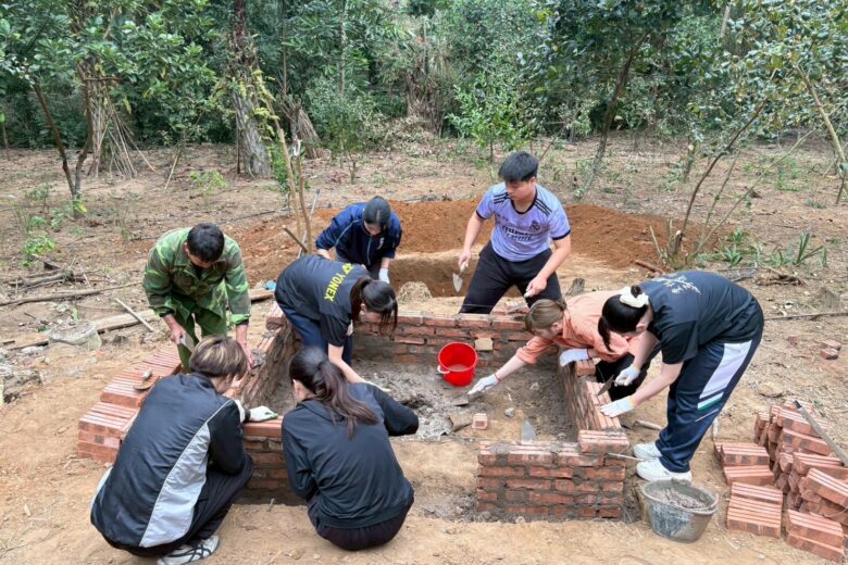 参加者はベトナム北部のブオック村に行き、現地の家庭にホームステイします。現地のコーディネーターがリーダーとなり、参加者やホストファミリー、村人のコミュニケーションの窓口となります。プログラムの内容は、主に家庭のトイレづくりや貯水タンクづくりですが、村の現在の状況やニーズによって異なる場合もあります。過去には、幼稚園の壁のペンキ塗りや道端の小さな売店作りをしたこともあります。村の子供たちに英語や日本語を教えたり、日本の伝統的な遊びやアクティビティを紹介したりと、文化交流の機会もたくさんあります。