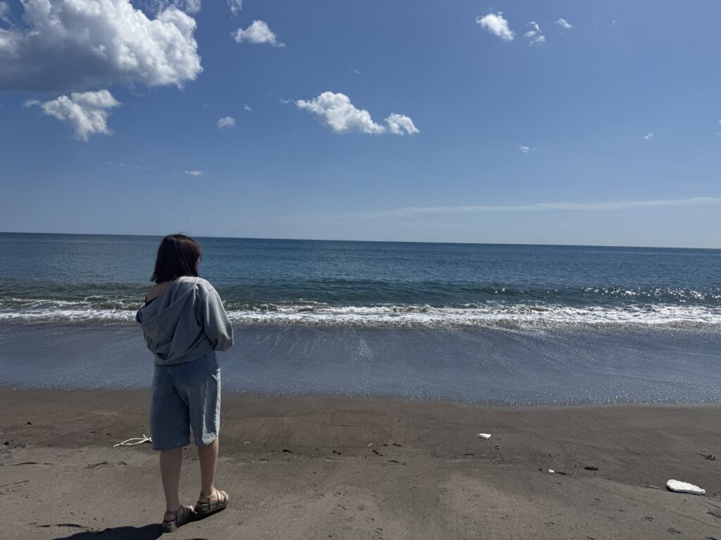 インタビューが終わると、チームの夏海先輩と合流して先生と3人で海を見に行きました。