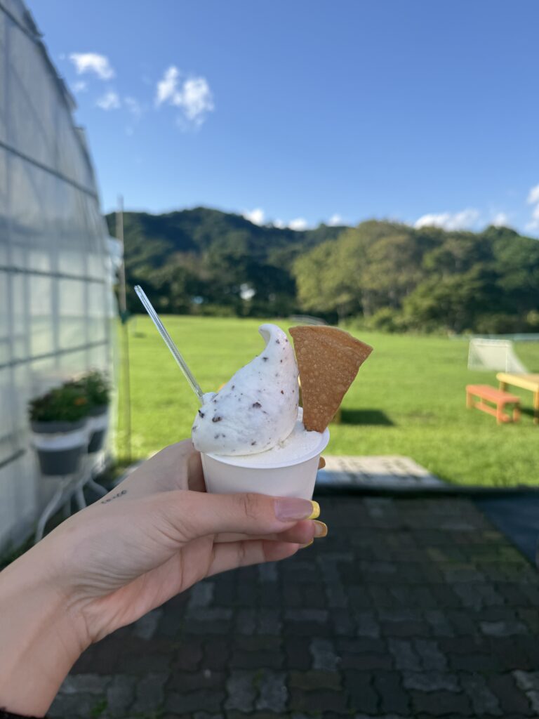 その後もう一度地田先生とOGのあおいちゃんと合流して、ゆジェラートさんでミルクとパリチョコのジェラートを食べました。
