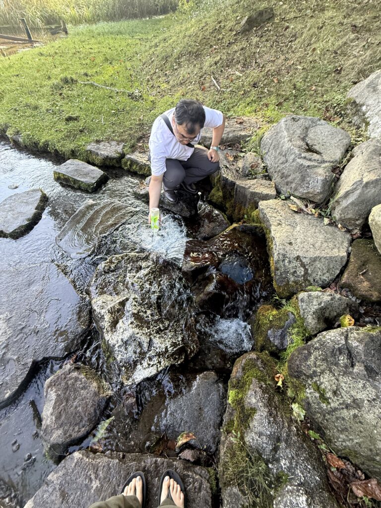 その後先生が行きたかったところに着いていく時間!美味しい湧水を飲める場所に連れて行ってもらった後、太平洋が綺麗に見える場所に連れてってもらいました。