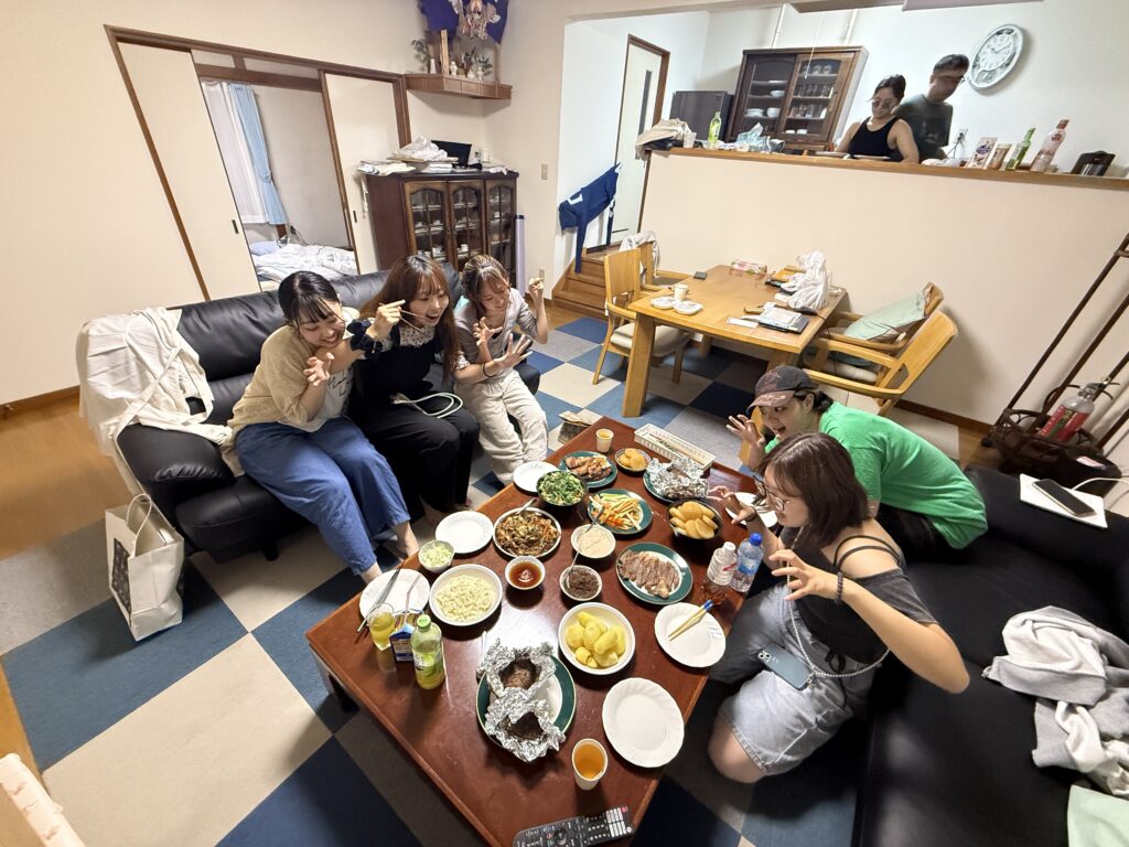 OGのあおいちゃんと地田先生がご飯を作ってくれました。豪華な食事!全部美味しかったです。