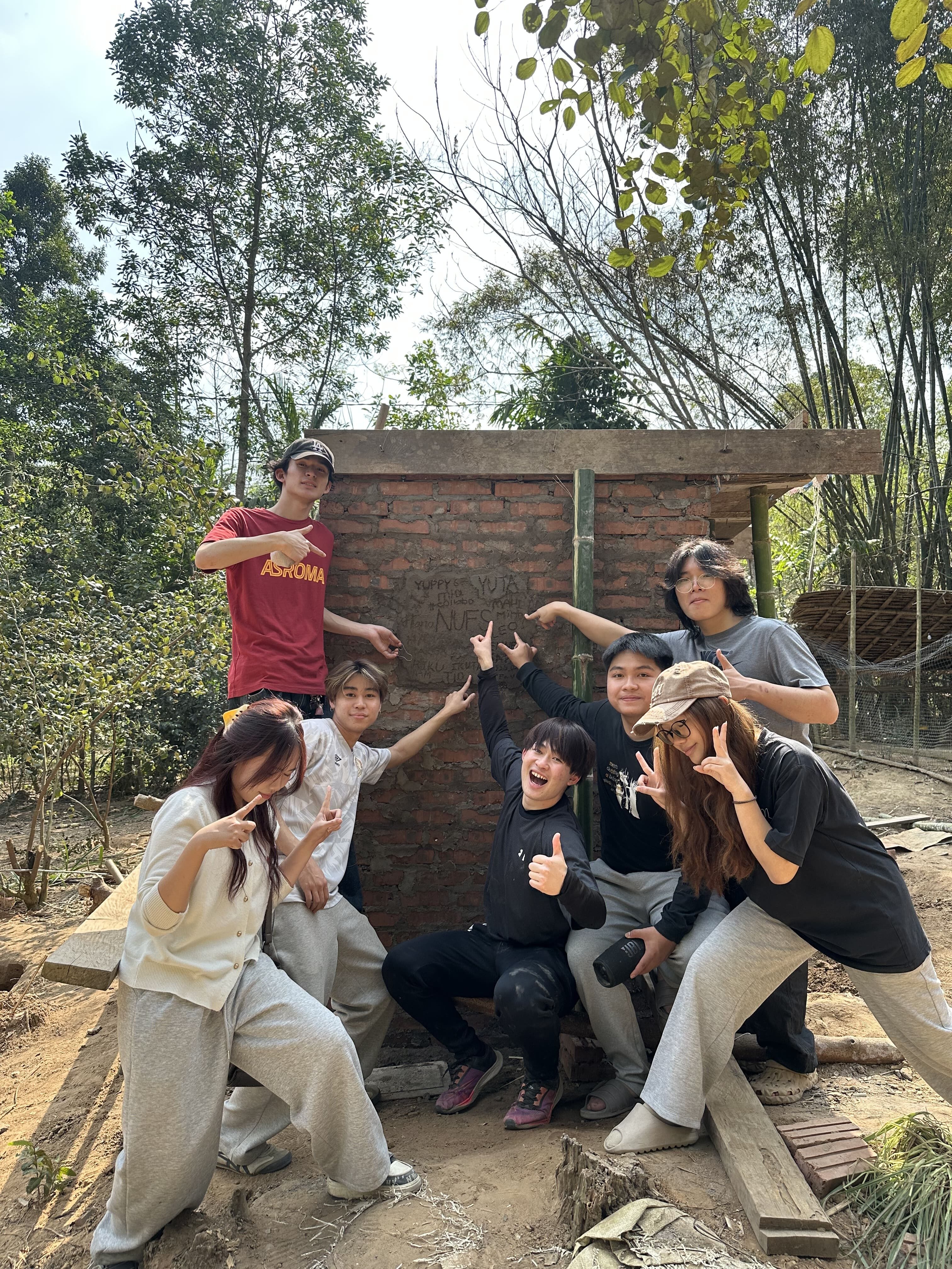 屋根も完成した後はレンガの壁にみんなで作った記念として、それぞれの名前を入れたり、日付を書きました。自分たちが作った証がこうして残ることはとても嬉しかったです。