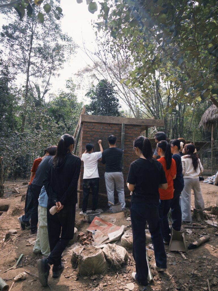 トイレ作りが始まって4日目です。1日目から着々と進んでいき、最終日は屋根にセメントを入れる作業をしました。みんなでバケツリレーをしてセメントが入ったバケツを繋いでいきました。