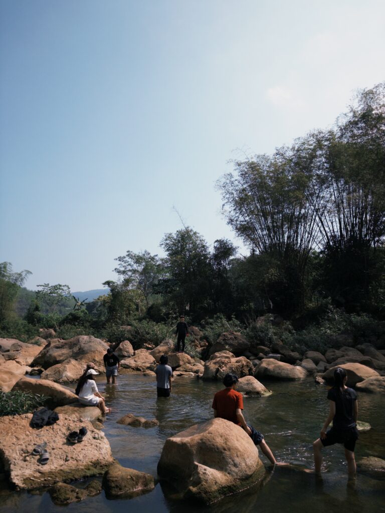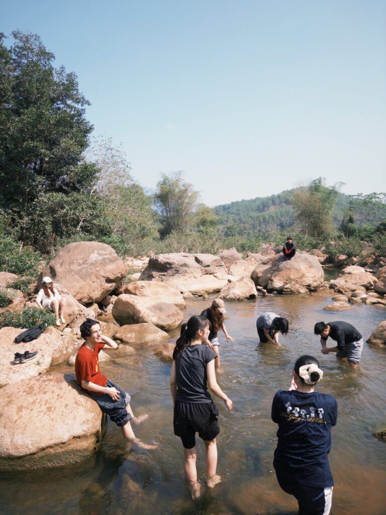 午前の作業が終わったあとは、みんなで川に行って水遊びをしました。この日の村の気温は暖かく川遊びをするにはちょうどいい天気でした。作業で疲れた身体をみんなで癒しに行きました。
