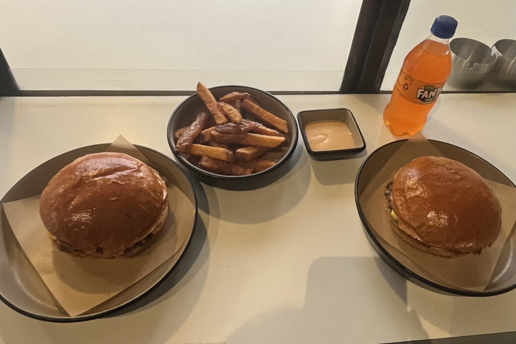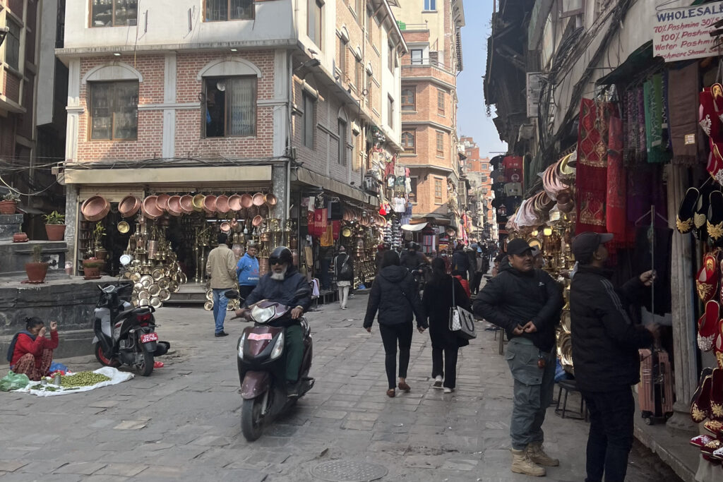 バス移動の途中には大きなショッピングモールに立ち寄り、1時間の自由行動がありました。みんなそれぞれ、お土産用のおやつを買ったり、現地の人が日常で着ている服を買ったり、アイスクリームを食べたりと、思い思いに過ごしていました。中にはスーツケースを新調している子もいて、思わず笑ってしまいました(笑)。ホテル到着後は17:00まで自由行動となりました。ホテルのすぐ近くにはタメル地区という商店街のようなエリアがあり、そこで各自ランチや買い物を楽しみました。私は、「Smashing Burger」で、ネパールに来て初めてジャンキーなハンバーガーとポテトを食べました。