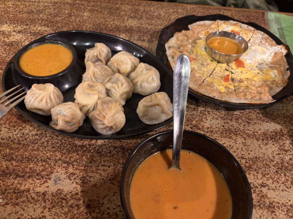 サクサクのクロワッサンをカフェラテに浸して食べるのがとても美味しかったです。夜はネワール料理をいただきました。
