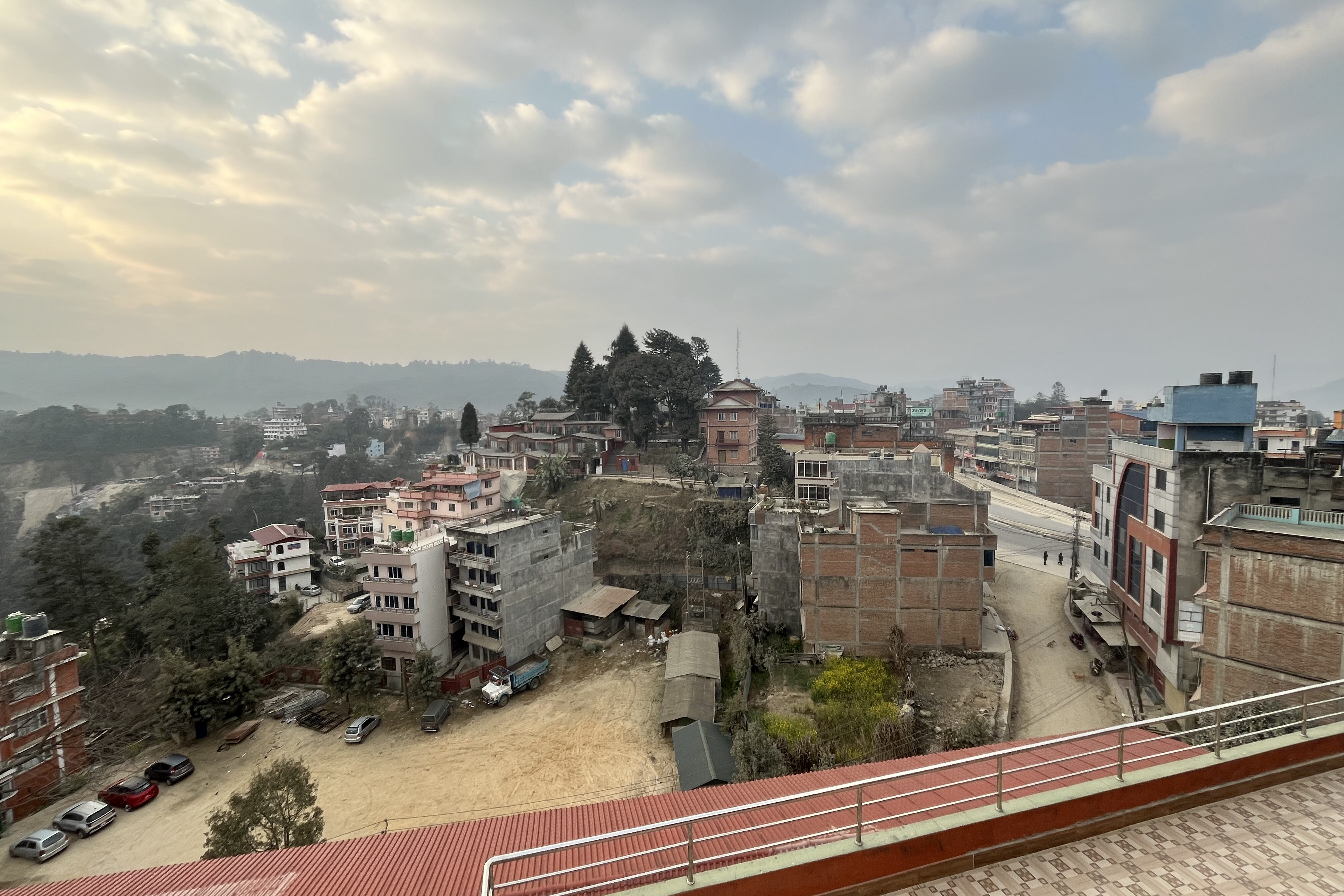 今日は、「Dhulikhel Sunrise Resort」をチェックアウトし、首都カトマンズの「アバロン ハウス」へバスで移動しました。デュリケル最終日ということもあり、記念に朝焼けの写真を撮りました。