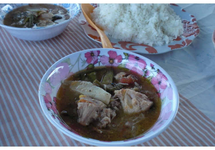 お昼ご飯には、ビビアンさんをはじめとしたお母さん方特製のシニガンをいただきました。私たちの口に合うように作ってくださったそうで、本当に美味しく、もう一度食べたいと思うほどでした!!